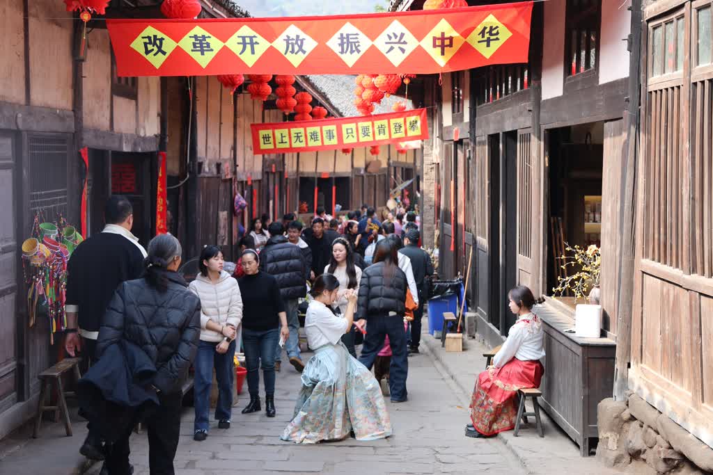 滚铁环、抽“三大件”、看港风师法秀……本年春节,位于泸州市古蔺县的太平古镇,这个以红色文化闻明的古镇迎来客流岑岭,完成了一场令东说念主瞩认识“蝶变”——从往时搭客走马不雅花的“2小时打卡地”,转机为一个能让东说念主们千里浸其中至少12小时的“怀旧盛宴”。数据露馅,本事市外搭客占比独特60%。