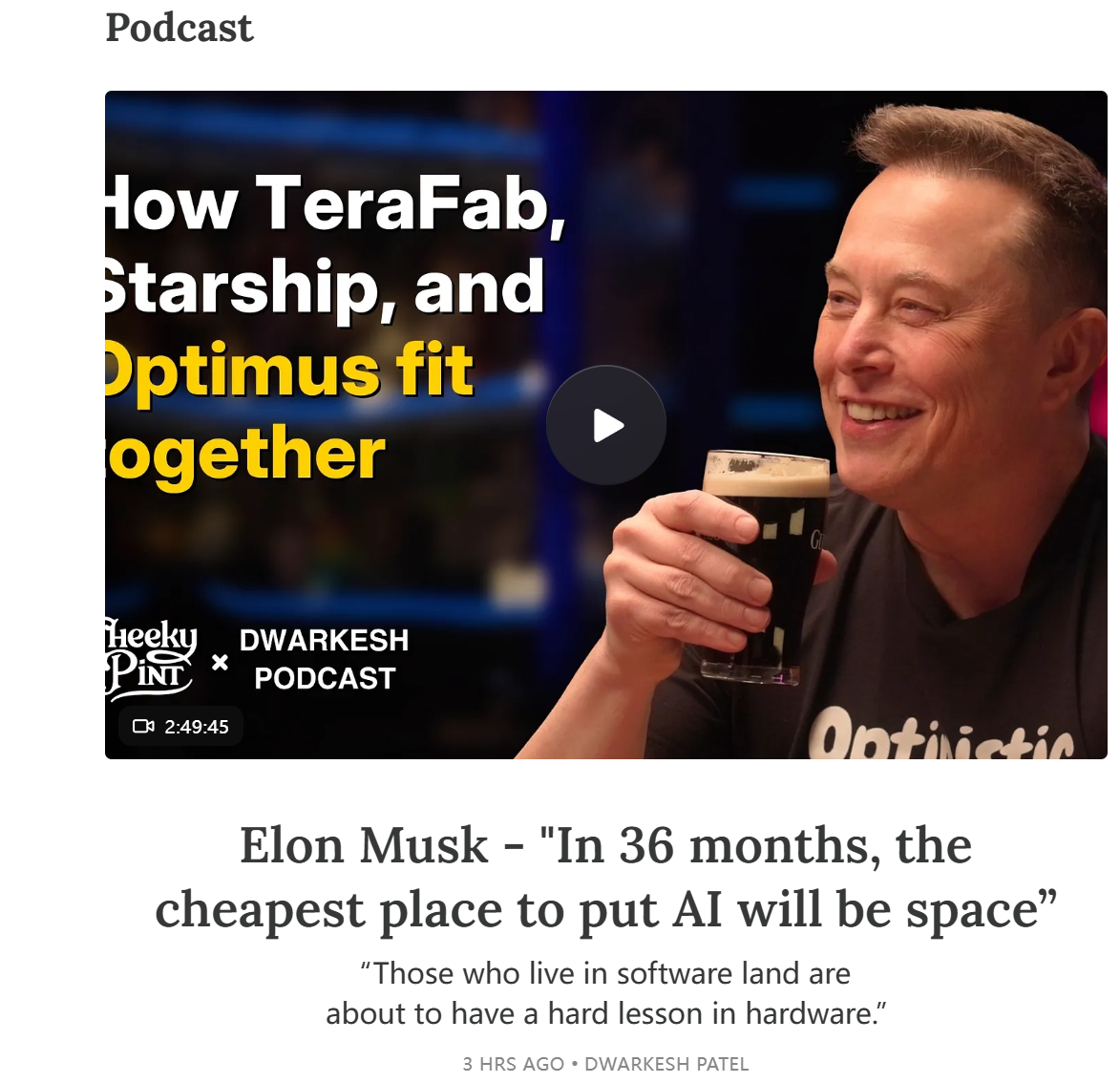 财联社2月6日(剪辑 史正丞)北京技术周五凌晨,马斯克作念客著明科技访谈播客Dwarkesh Podcast的节目上线。行为民众成本阛阓热门话题的“天外GPU”,又得到寰球首富的重心阐发。