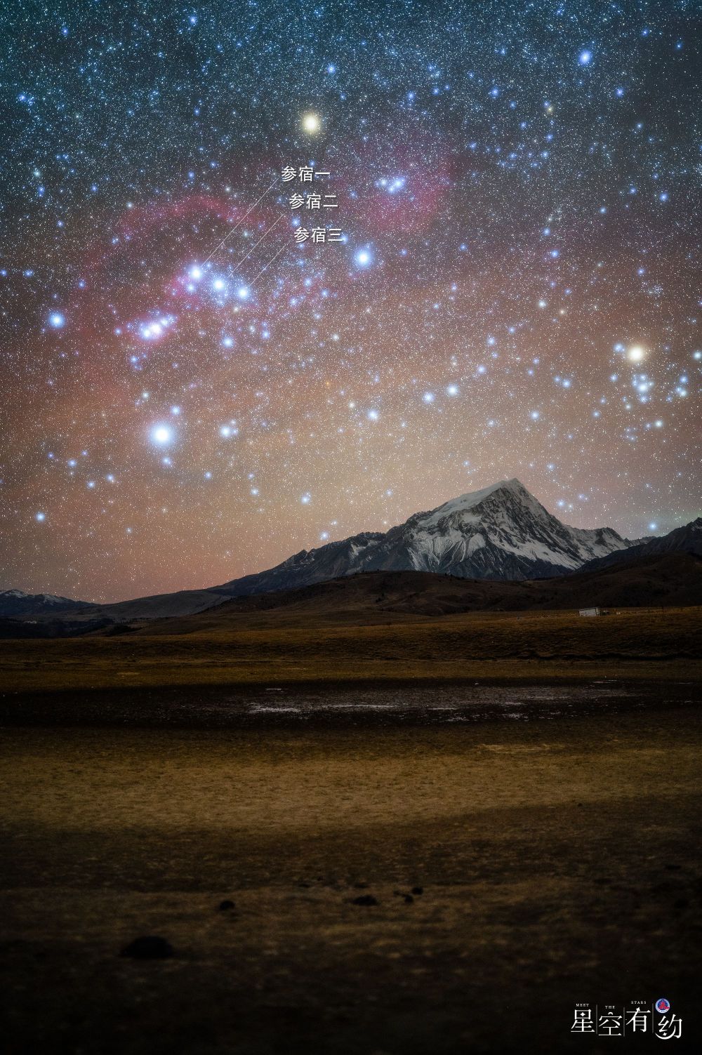 2026年2月7日,在河北省张家口市张北县草原天路拍摄的参宿三星。(赵利丽 摄)