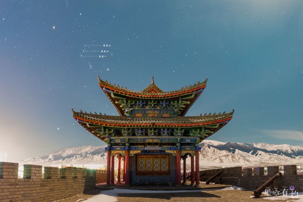 2023年1月4日,在新疆维吾尔自治区哈密市巴里坤古城拍摄的参宿三星。(周博 摄)